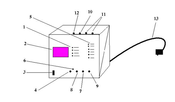 Bề ngoài của máy đếm có hình dạng như sơ đồ trên,