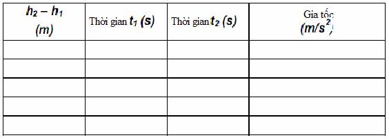 vào bảng 1. Sử dụng phương trình (5) tính gia tốc trọng trường.